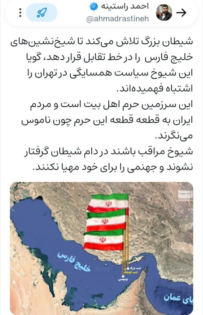 احمد راستینه سخنگوی فراکسیون دفاع و اقتدار ملی مجلس در واکنش به بیانیه مضحک شورای همکاری خلیج فارس درباره جزایر سه گانه ایران در شبکه ویراستی خود نوشت: